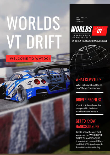 The first issue of the WORLDS VTUBER DRIFT CHAMPIONSHIP magazine is now here! Check out the new issue which showcases the tournament series as a whole, ranging from what the tournament is about, the drivers that competed in yesterday's Exhibition Round and the exclusive interview with tournament winner HanksKillZone that happened right after he claimed victory and first overall against HeyKaisky in the final round of the Tandem Battles.
